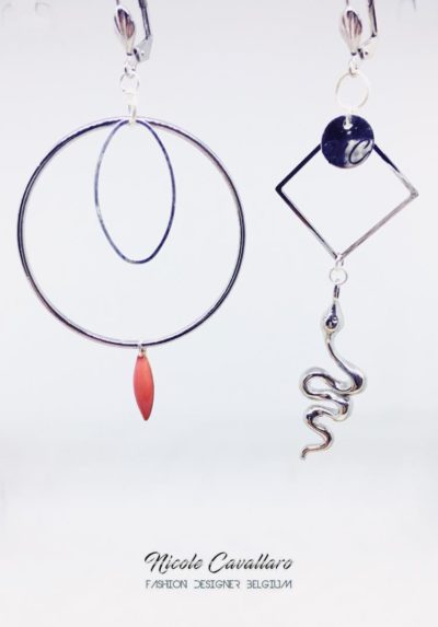 Boucles d'oreilles asymétriques Nicole Cavallaro magnifique boucles d'oreilles argentées avec pendentif cercle et serpent35,00€