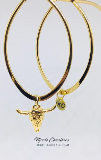 Boucles d'oreilles asymétriques Nicole Cavallaro Créoles pendentif buffle doré35,00€