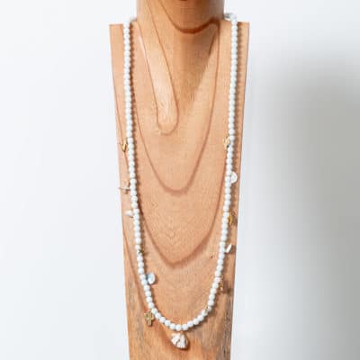 Bracelets simples en pierres semi-précieuses divers coloris avec un pendentif en forme de coquillage doré et blanc et pendentif ...29.00€