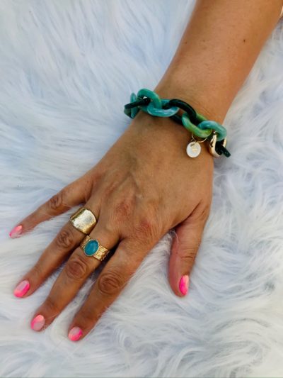 Bracelet simple mailles en résine Ce bracelet s’assortit parfaitement à d'autres bracelets dorés ou perles pour des combinaisons à ...Le prix initial était : 26,00€.20,00€Le prix actuel est : 20,00€.