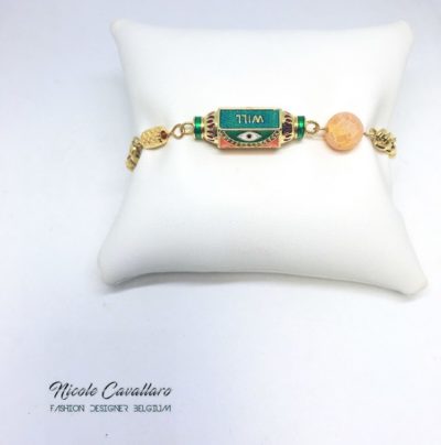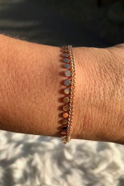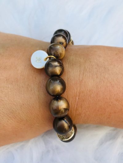 Bracelet en perles brunes ou vertes avec des petits ronds plats dorés. Ce bracelet pourra parfaitement s'accorder avec les ...23.00€