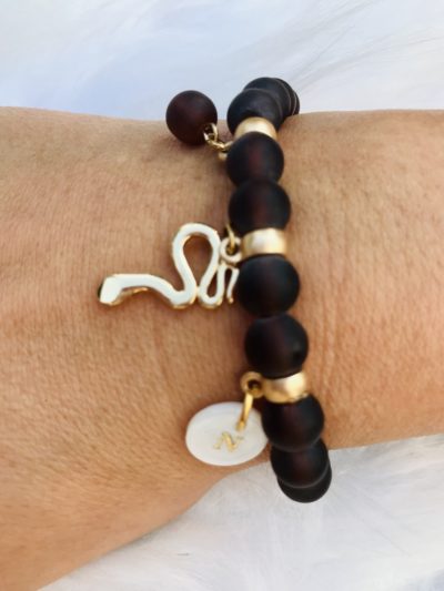 Bracelet simple en perles de verres avec pendentif serpent Ce bracelet s’assortit parfaitement à d'autres bracelets dorés ou perles ...29,00€