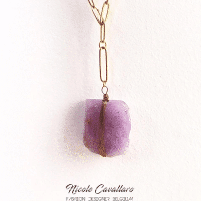 Boucles d'oreilles asymétriques Nicole Cavallaro Créoles cerise et chaine avec des pierres naturelles35,00€