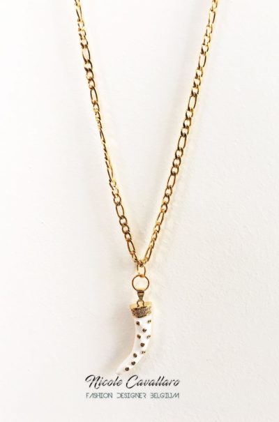 Long collier en acier inoxydable composé d’une jolie corne blanche en zircon40,00€