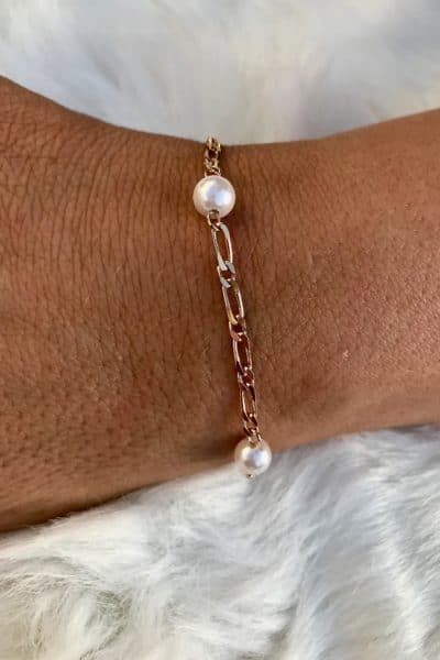 bracelet plaqué or 18 carats mailles fines et perles d'eau douce Vous pourrez l'assortir avec d'autres bracelets ou le laisser ...27,00€