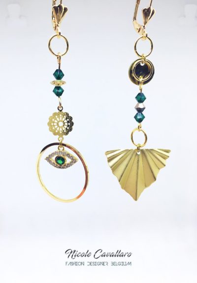 Boucles d'oreilles asymétriques Nicole Cavallaro magnifique boucles d'oreilles avec pendentif mauvais œil, pierres swarovski35,00€