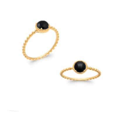 Fine bague effet petite bille sur l'anneau sertie d'une agate noire au centre et plaquée à l'or 18 carats ...39.00€