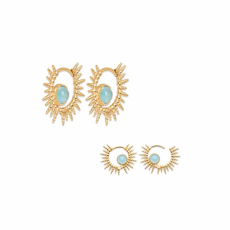 - Boucles d'oreilles plaquées or 18 carats en forme de soleil qui a pour centre la magnifique pierre semi-précieuse en ...53,50€