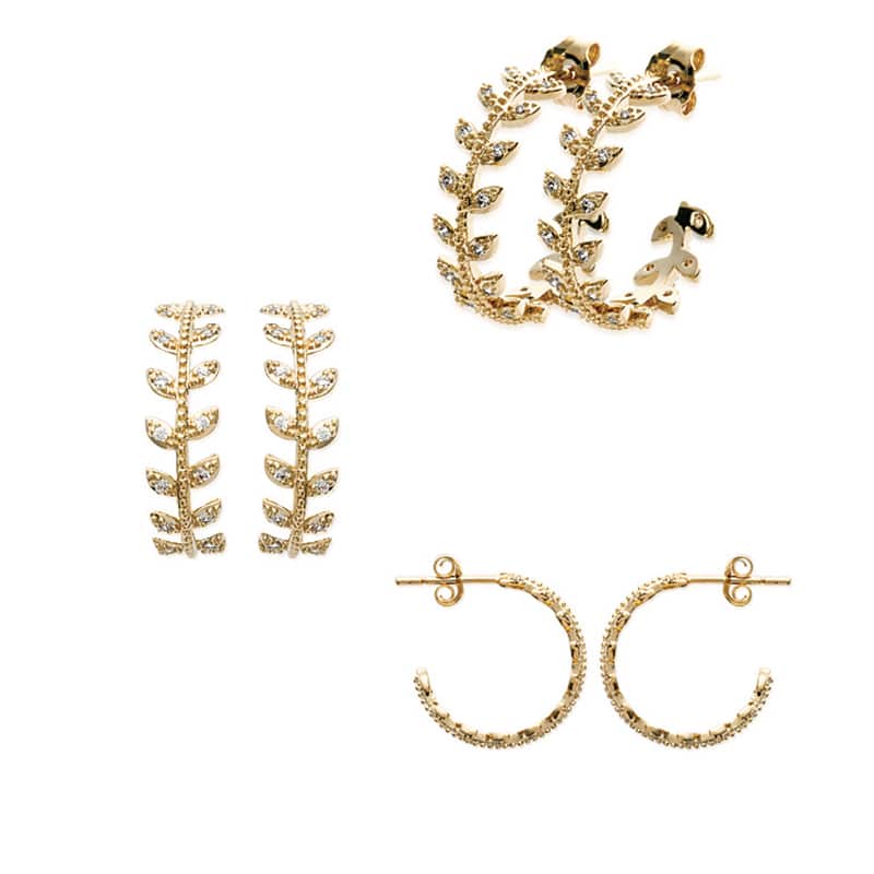 Créoles plaqués or 18 carats serties de zircons sur chaque feuille