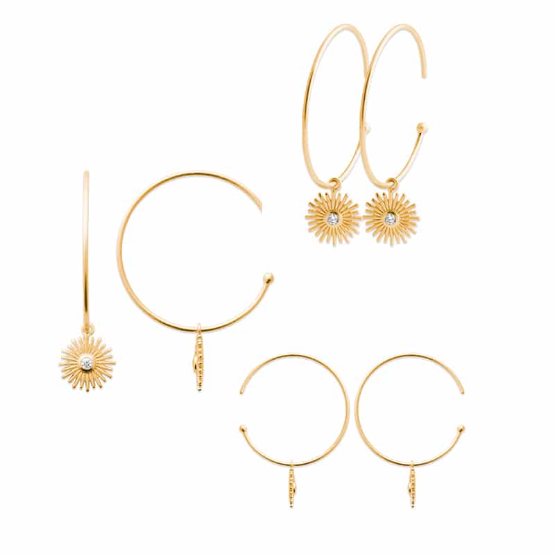 Bo créoles pendentif soleil brillant
