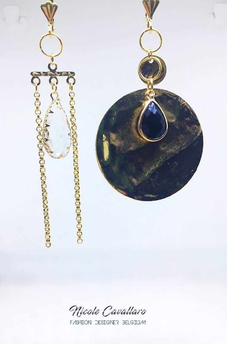 - Boucles d'oreilles plaquées or 18 carats qui a pour centre la magnifique pierre semi-précieuse agate noire40,00€