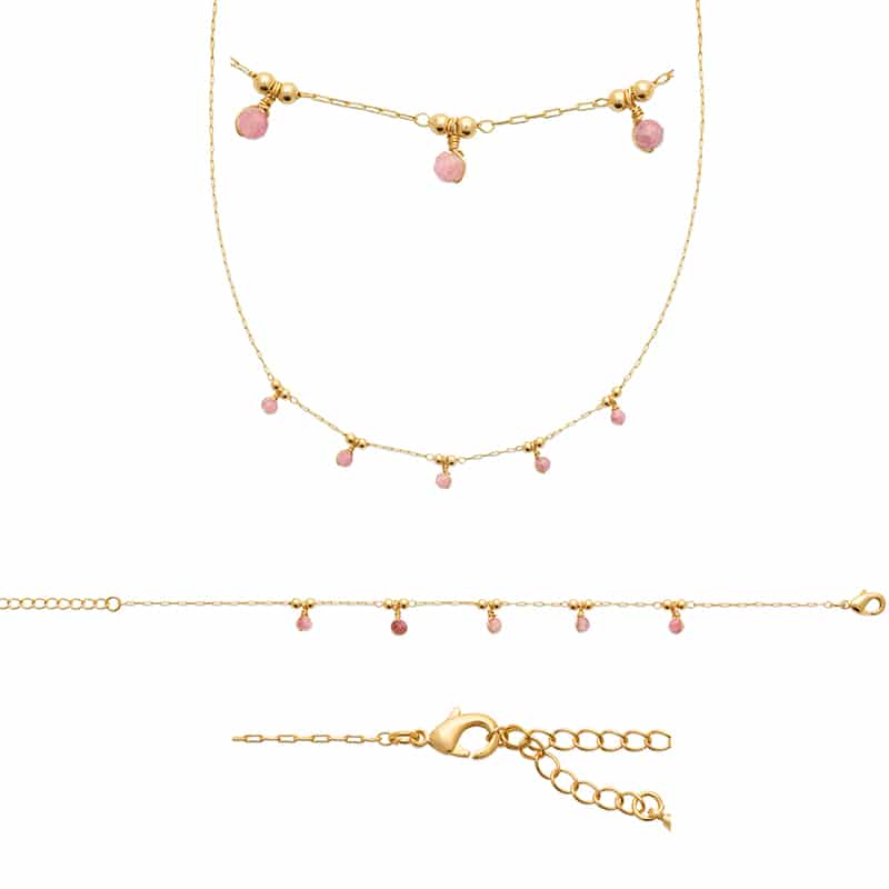 - Collier plaqué or 18 carats pierres semi-précieuse "Quartz rose" Disponible en bracelet pour une parure tout en douceur58,00€