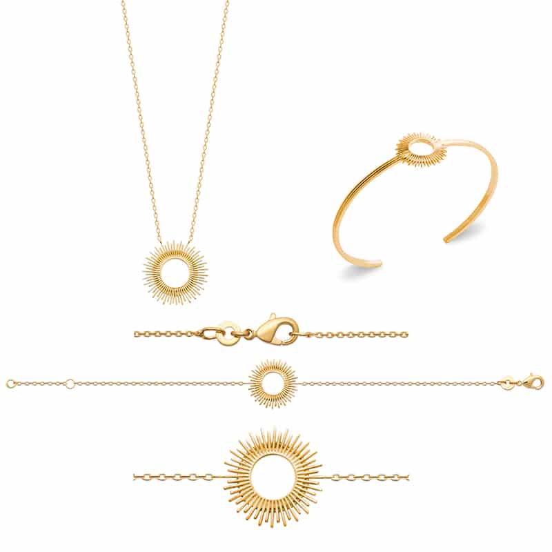 - collier plaqué or 18 carats pendentif soleil ouvert Le soleil embellira d'un éclat doré votre peau aux couleurs d'été Disponible en ...44,00€