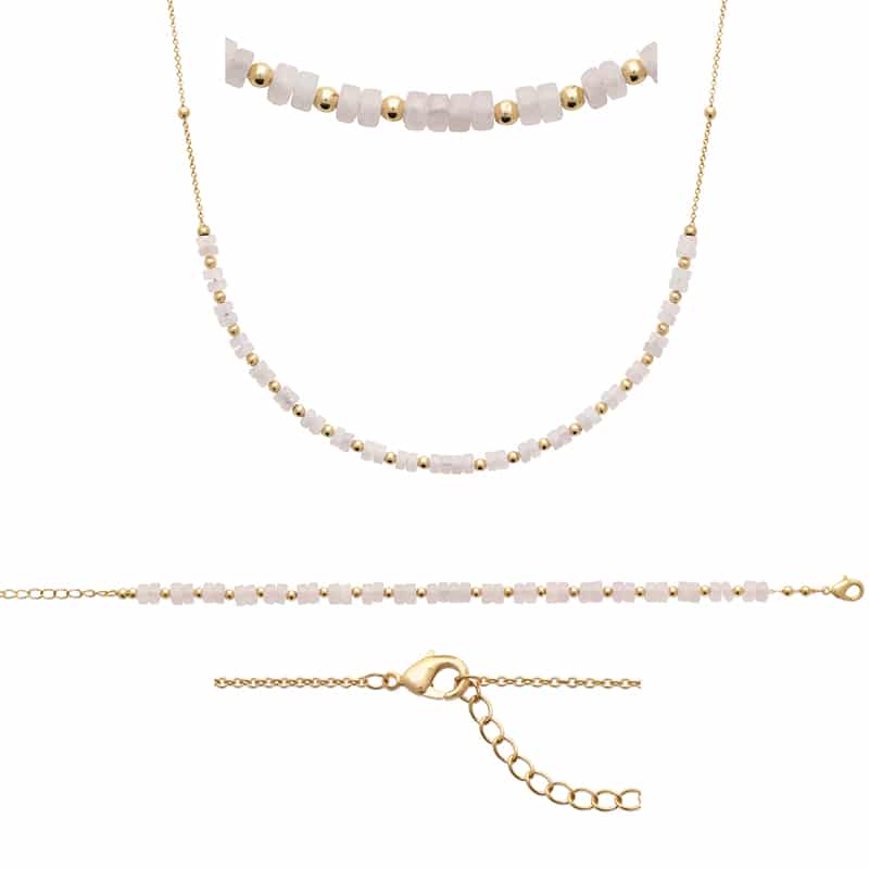 - Collier chaine plaqué or 18 carats composé de pierres en quartzite vert Disponible en bracelet pour été aux couleurs ...44,00€