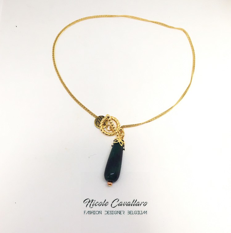 Les bijoux Nicole Cavallaro sont faits en belgique dans son atelier à Liège. Elle utilise des pierres naturelles, du swarovski, de l’acier doré à l’or fin sur les attaches.